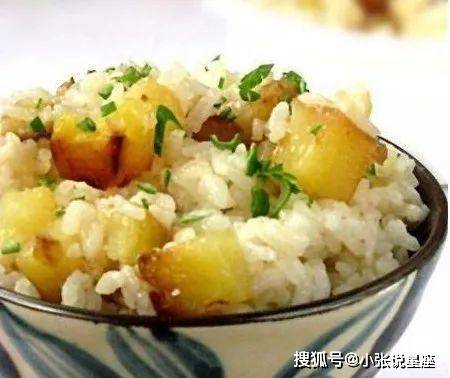 5.米饭煮熟后,打开盖子,将土豆和米饭轻轻搅拌至顺滑。准备上桌时,加入少许芝麻油并搅拌均匀。