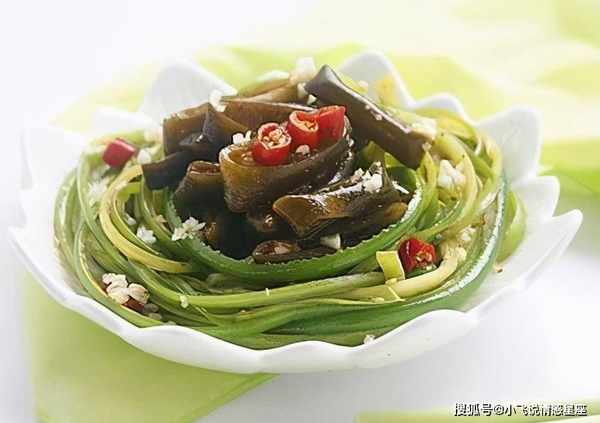做法:1、金丝绒片浸泡1小时,洗净挤干水分。将大蒜去蒂洗净备用。将胡椒切成环状,切碎大蒜(最好用压蒜器压碎)。将3汤匙酱油、1茶匙半香醋、1茶匙盐、1茶匙香油、自制辣椒油混合调成酱汁。