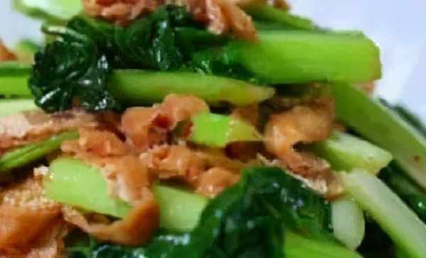 6、最后放入青蒜叶翻炒几下,加味精调味即可上桌。