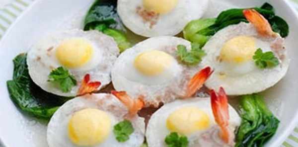 材料:虾仁、猪肉碎、鹌鹑蛋、火腿碎、香菜末、葱姜末、胡椒粉、料酒、盐、水淀粉、高汤、香油、酱油、蚝油