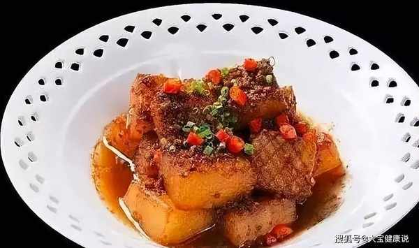 2.将油放入干净的锅中加热。将冬瓜块炒至外皮表面微黄,捞出备用。锅内留底油,加入猪肉碎炒香,加水适量,加盐、白胡椒粉、谷氨酸钠调味,放入冬瓜块炒至软熟,淋上老抽酱油上色,加入小米椒节,收汁至收干发亮时,撒上葱花即可食用。