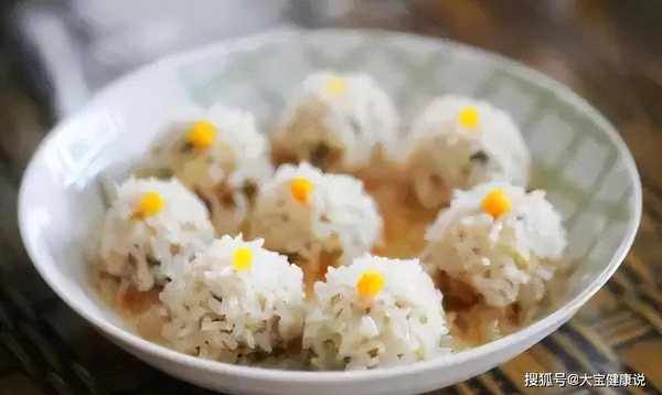 原料:肉末150克、豆腐一块、长糯米少许、胡椒粉、姜末、香油1茶匙、蛋清1个、盐少许