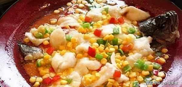 2.将洗净的鱼肉切成大块,锅内油加淀粉捞出,加入玉米粒、青红椒和鲜汤提味,最后放上炖好的软蛋准备好了