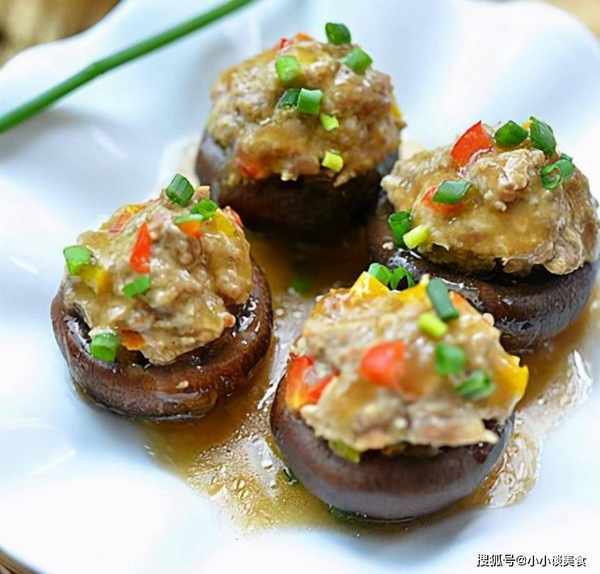 原料:香菇10朵(一盘)、肉末150克、鸡蛋1个、胡萝卜。调料:盐、十三香、蚝油、酱油、淀粉、葱花。