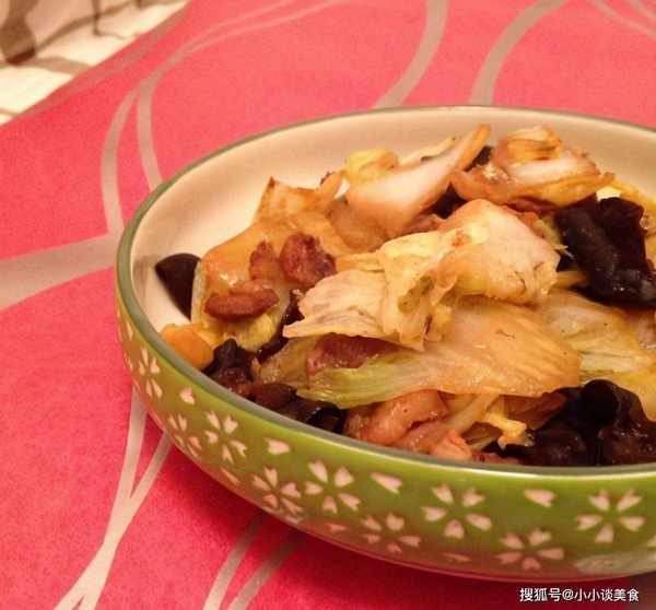 材料:香菇、白菜、肉片、料酒、酱油、葱花、八角、干红辣椒、油、盐;