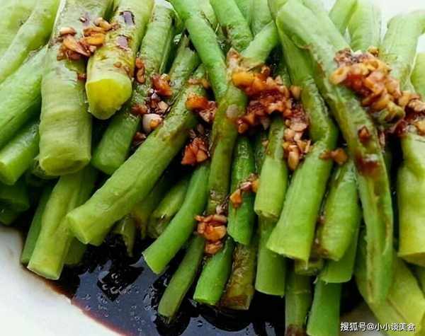 原料:豇豆适量、大蒜适量、香葱适量、小米适量、香油适量、香醋适量、盐适量