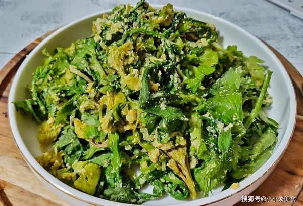 1:将芹菜叶撕开,放入大锅中。撕开的芹菜叶反复洗净沥干。然后加入适量的盐,搅拌均匀。加入大量玉米粉,再次搅拌,让每片芹菜叶都裹上一层薄薄的玉米粉。试着一次加一点玉米粉,一次混合一点。