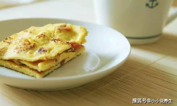 2.放入平底锅中油炸至成型,加入鸡蛋,将蛋糕未炸的一面盖在鸡蛋上,取出。