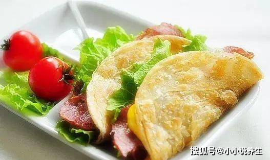 原料:鸡蛋1个、火腿80克、生菜2片、培根2片、低筋面粉250克、番茄酱适量、大葱2条、食用油适量。