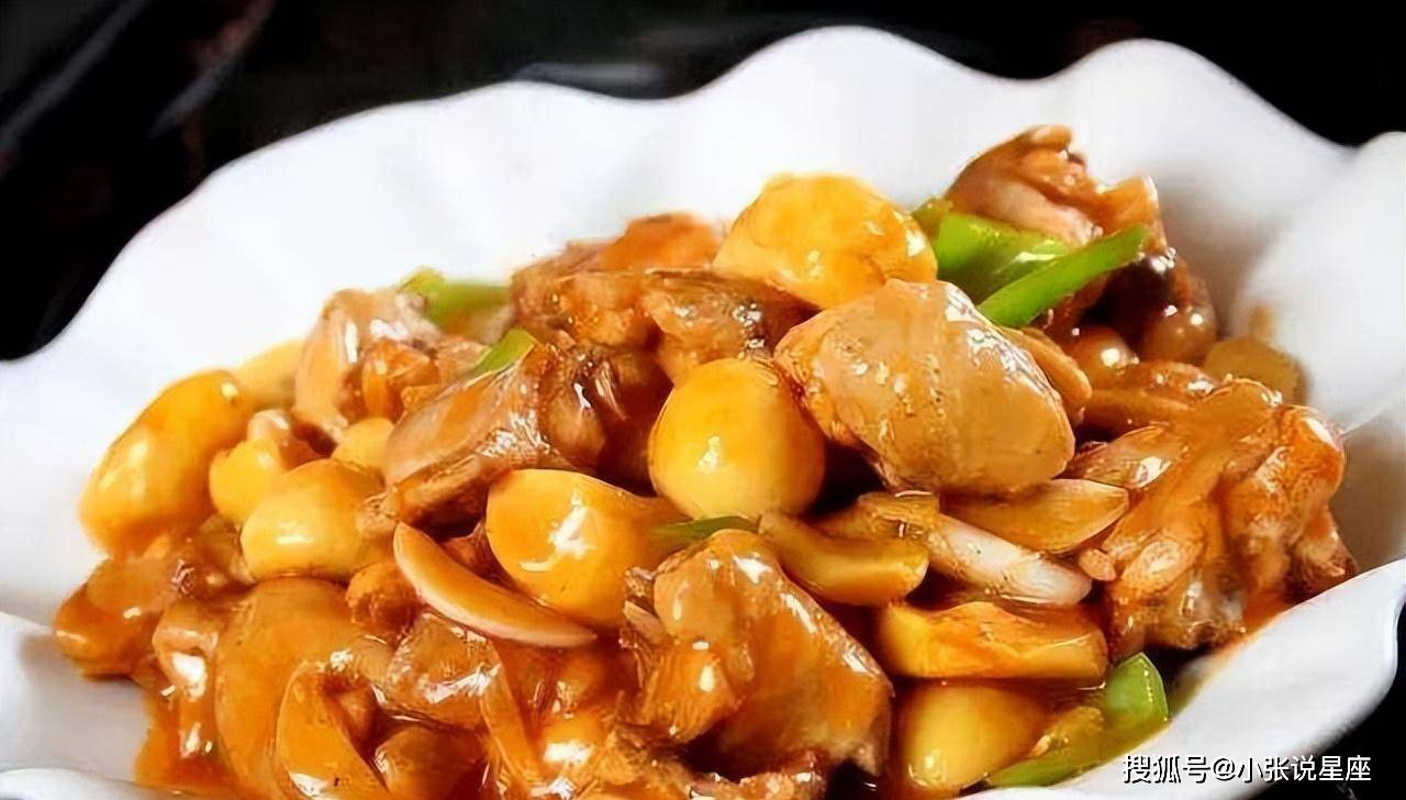 3.锅里倒入少许油,先倒入鸡肉,炒至变色(如图2),加入栗子继续炒几分钟。