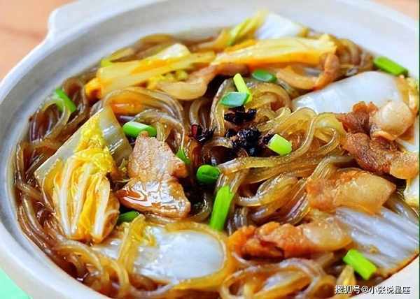 先把红薯粉条泡热水♨️,白菜切片,五花肉切片,红薯粉条不要太短。切小葱,