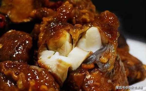 2.鸡蛋液和面粉混合成面团,将肉块包在鸡蛋面团里,用70%的热油炸至外焦里软,捞出备用;