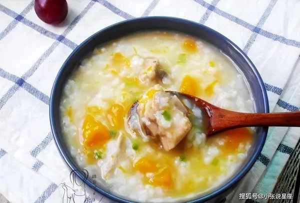 4.将南瓜块加入粥中再煮15分钟。多搅拌几次可以帮助南瓜更快融化。如果你喜欢厚实的南瓜,烤10分钟。
