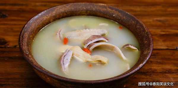 将猪肉和鸡肉放回锅中,开火烧开,加入一小把枸杞子,用文火炖一会儿,汤就可以上桌了。