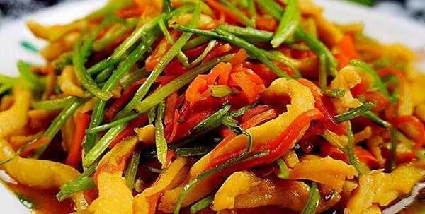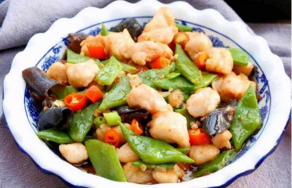 原料:油海参100克,虾仁100克,水煮鸡胸肉100克,红辣椒1个,黄辣椒1个,香油6克,酱油6克,香醋3克,香醋3克精盐、味精1.5克。