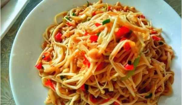 配料表:金针菇、酱油、黑醋、小米椒、干辣椒、洋葱、大蒜