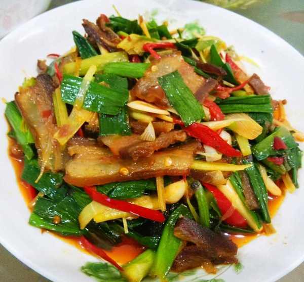 配料:背肉、蒜苗、青椒、红椒、生抽、糖、豆瓣酱