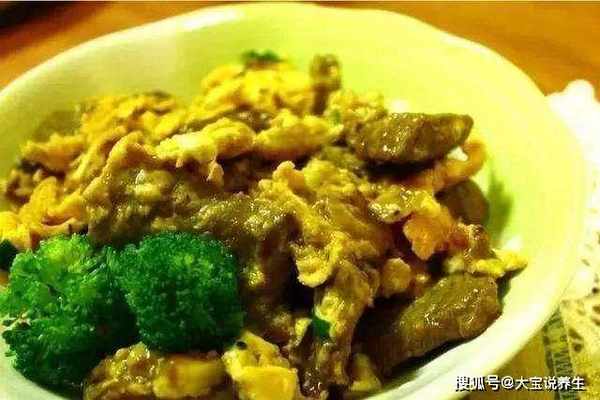3)煎锅倒入油,大火加热7分钟,加入牛肉片翻炒至变色,即可食用。稍微冷却后,倒入蛋液。