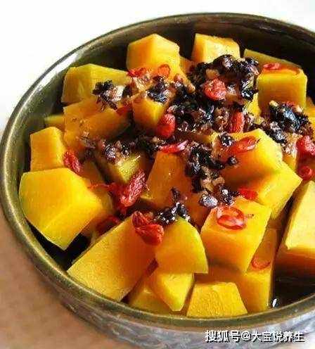 3.南瓜淋上自制豆豉,上蒸锅蒸20分钟左右,拌匀即可食用。