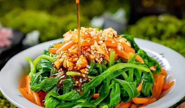 焯水之后搭配调料拌着吃,根茎部分酥脆,上面的短腺毛细细软软的,吃起来趣味十足。