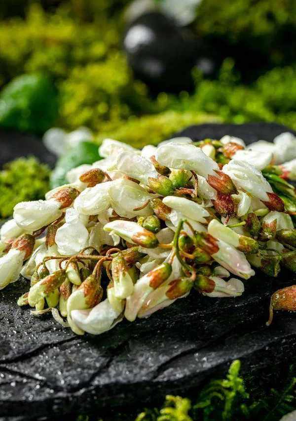 神奇的是,加热后的金雀花香气更加凸显,像韭菜花一样清脆而有嚼劲,在舌尖上变得更加鲜活。