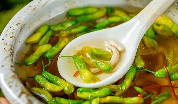 有意思的是,榆钱用来煮汤,清鲜醇香,春意遍布眼帘。