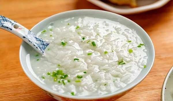 一碗素粥,添上沙葱粒调味,就连米花都能啖出几分鲜美。