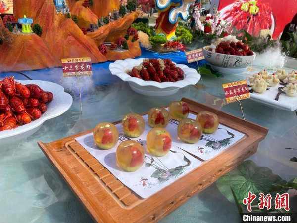 各种小龙虾美食逐一登台展示,极具艺术观赏性。 徐珊珊 摄