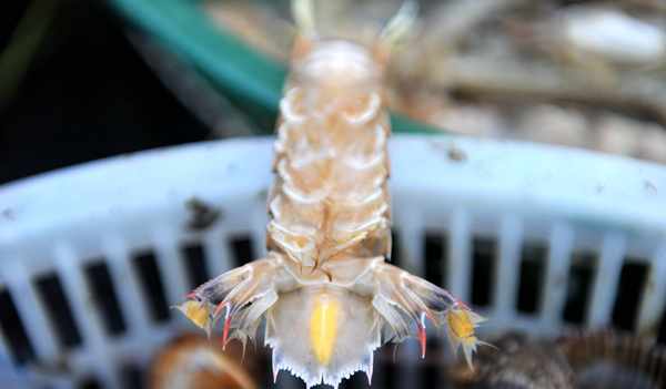 新鲜的皮皮虾颜色发亮尤其是眼睛会发出绿莹莹的光,如果背部弓起,能跳起来,说明它刚捕捞上岸不久,如果老老实实软趴趴地躺在那里,尾巴是闭合的基本是就已经非常不新鲜了,鲜活的皮皮虾尾部是张开的。