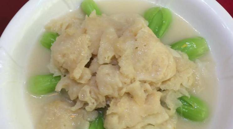 扒广肚是一道色香味俱全的河南名菜,广肚也称鱼胶、花胶,是传统的高档名菜。扒广肚成菜后醇香味美,色泽洁白莹润,芳香扑鼻,入口柔美、汤汁顺滑,是一道非常值得品尝的美味。