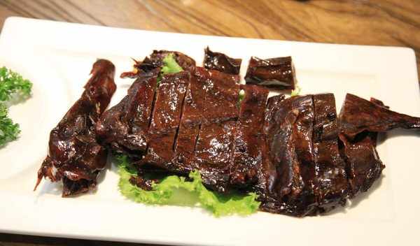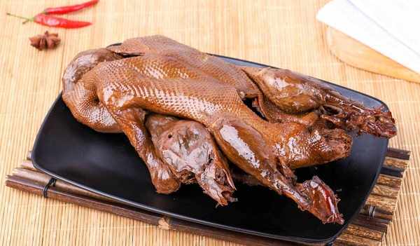 酱板鸭选用的是湖南当地的水鸭,先用香芷、紫贝、桂皮、木兰、辛夷、辣椒等40多种香料和中药浸泡入味,然后再风干、烤制,总共需要15道工序。现在酱板鸭已成为一种送礼待客的佳品,风靡大江南北。