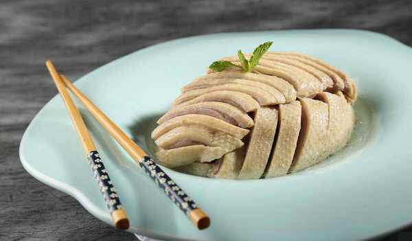 盐水鸭最能突出鸭子的本味,采用“熟盐搓、老卤复、吹得干、煮得足”的做法,经过一个小时左右的低温熟煮,使得盐水鸭的美度恰到好处。