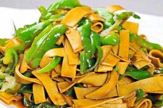 材料:千叶豆腐皮、青椒、葱花、盐、油、蚝油、生抽、鸡精