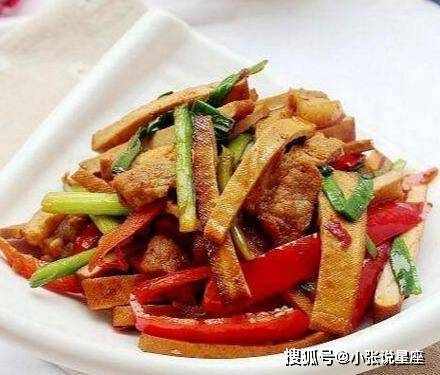 原料:豆腐干5块,五花肉150克,红辣椒1个;蒜苗3份,豆瓣酱2勺,油2勺,料酒2克,生姜3毫升,生姜一片;