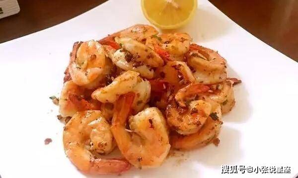 3.大蒜变成金黄色后,加入虾。同时,研磨黑胡椒、胡椒粉和盐。黑胡椒和五香粉的量很随意,口重的就多加,喜欢清淡的就少。只需一小撮盐就足够了。4.快炸至虾变红卷曲。加一点柠檬汁,摇两下就完成了。(虾从入锅到出锅不超过五分钟。)装盘。