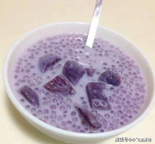 3.取出芋头和紫薯,根据个人喜好加入煮熟的西米露或炼乳。吃之前,最好等它们凉了再放入冰箱冷藏一会,口感更佳。