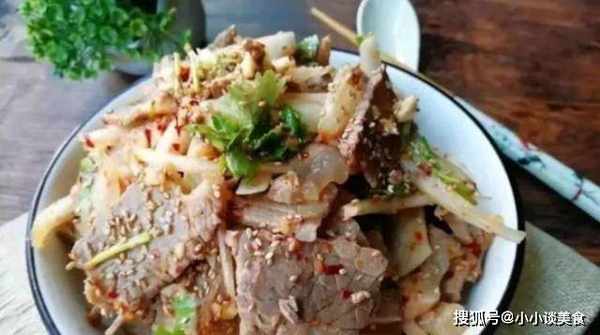 2、电饭煲加入热水,加入泡好的牛肉,再加入葱、姜片、刺灰、料酒,烧开1小时,将牛肉烧开,捞出晾凉;