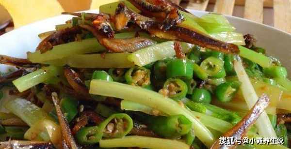 材料:芹菜、辣椒、鱼干、盐、酱油、料酒、姜末、花生油