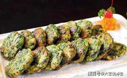 3.锅里放油烧热,将鲜虾茸和菜心丸各50g,放入锅中压扁,用小火慢慢炸至成熟,两面金黄两面,捞出控油,装盘看。