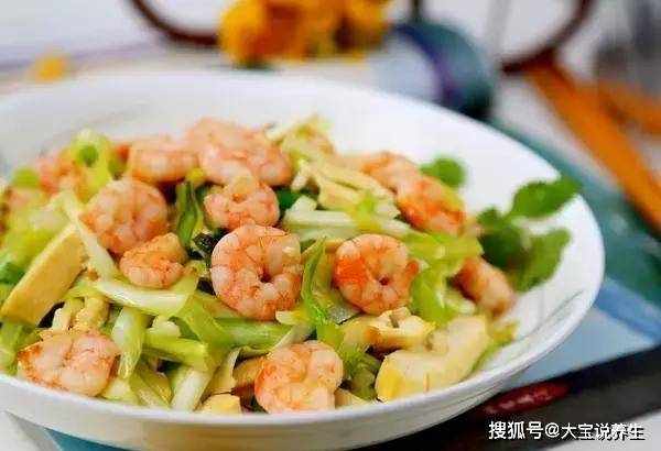 4、炒匀,熄火备用,另起一锅,热油下香葱和豆腐干。5.快炸两次,加盐调味,最后将虾仁摇匀,炸匀。