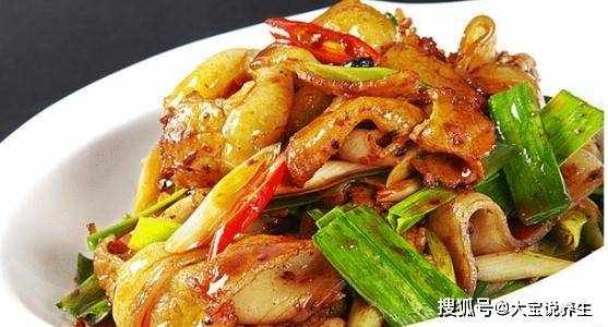 2、热锅冷油,先放花椒爆香,弃去,再加入姜、蒜、红辣椒、大肠用大火翻炒一分钟;