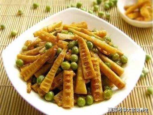 材料:笋500克,豌豆50克,葱少许,蚝油1茶匙,生抽3茶匙,糖1茶匙,盐1/2茶匙,鸡精1茶匙