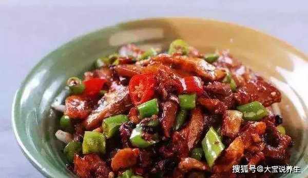 2.锅内油烧热,爆香蒜头,加入去骨肉和青椒圈炒香,入湖酒煮熟,加盐调味,倒入骨汤文火收干,加胡椒粉调味和服务。