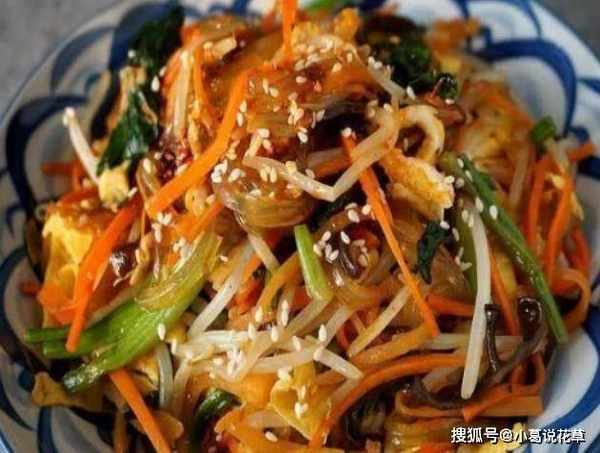配料表:红薯粉、绿豆芽、胡萝卜、菠菜、黑蘑菇、鸡蛋、葱末、蒜末、白芝麻、酱油、盐、糖、白胡椒粉、辣椒油