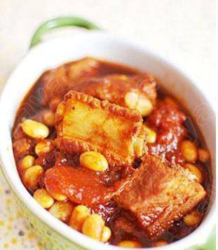 材料:排骨500克,西红柿250克,黄豆100克,蚝油1勺,料酒1勺,生抽1勺,花椒半勺,八角3颗,适量食用油适量,水适量