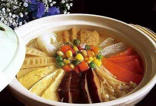 材料:烤麸、香菇、竹笋、魔芋面(或普通红薯面)、胡萝卜、金针菇、素鸡(或豆腐皮)、冬瓜。