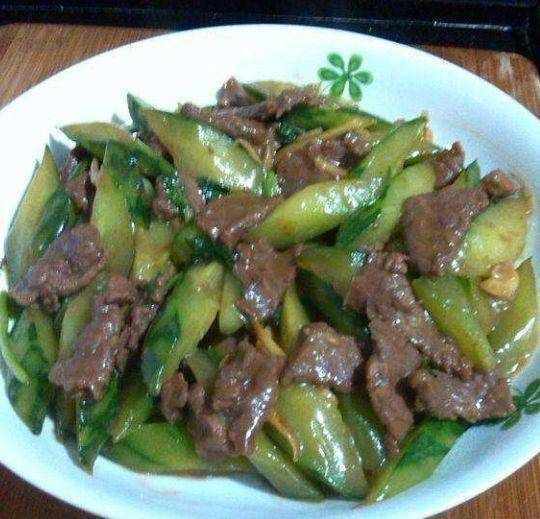 1、牛肉洗净切块备用,黄瓜去皮洗净,去袋切小块备用,姜洗净切丝备用。