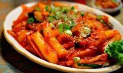 2.锅里放油烧热,下辣椒、姜、葱把年糕炒香,加入鸡高汤烧开,搅匀,加入十三香、盐、鸡精,味精,加入文蛤,煮约4分钟至熟透。