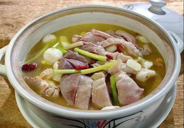 4.大火烧开,转小火炖10分钟。汤浓时下葱,鸡精即可出锅。