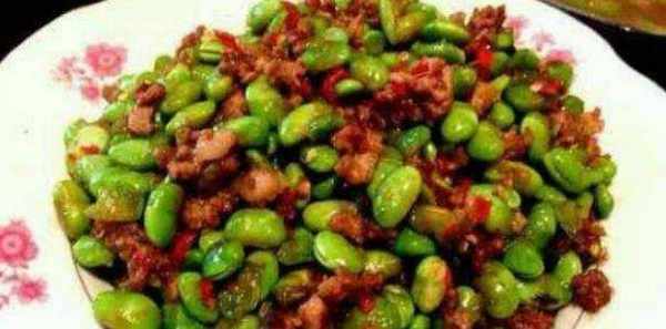 6、倒入毛豆翻炒,加入毛豆的盐,加一小碗水,盖上锅盖煮两分钟。